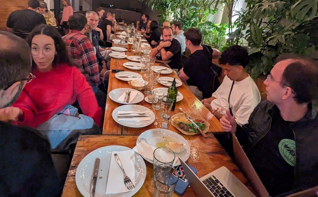 The Ipê community spontaneously decided to gather for a dinner during the week of Devconnect. The result: 30 people sharing food and vibes. Small Argentinian problem, we couldn’t split the bill. Who will build an app for that? Good governance starts with splitting the bill.