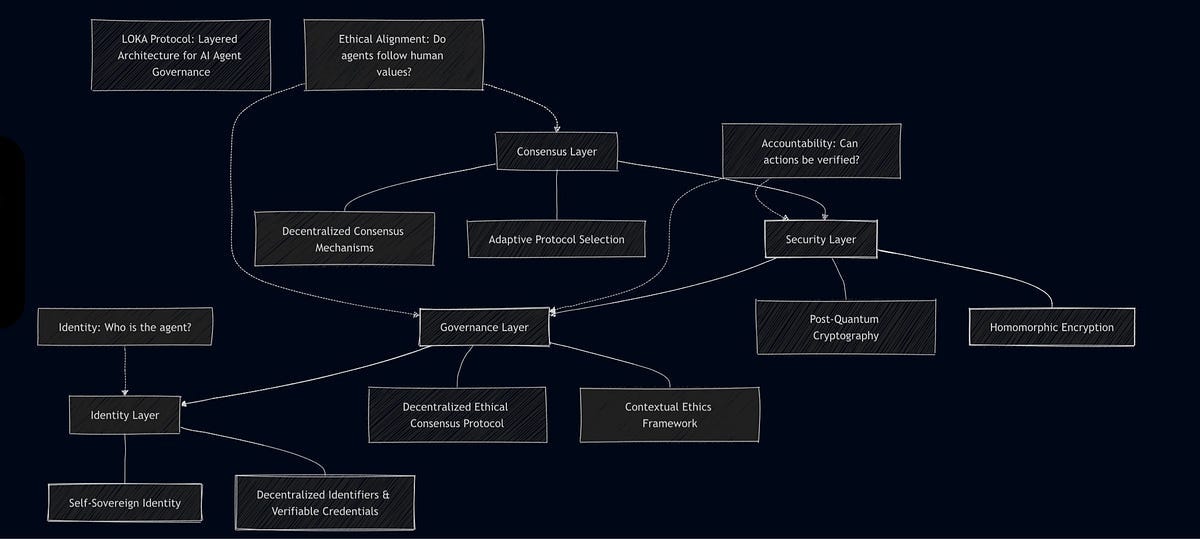 AI agent platforms are proliferating fast. Virtuals Protocol, ElizaOS, and Fetch.ai are all in production, processing real transactions and governance decisions. Their shared approach: ethics implemented as governance layers that sit on top of the protocol. LOKA Protocol proposes something architecturally different, embedding ethics into the protocol layer itself through DIDs for agent identity, auditable action trails, and ethical constraints that enforce boundaries before agents can act, not after.