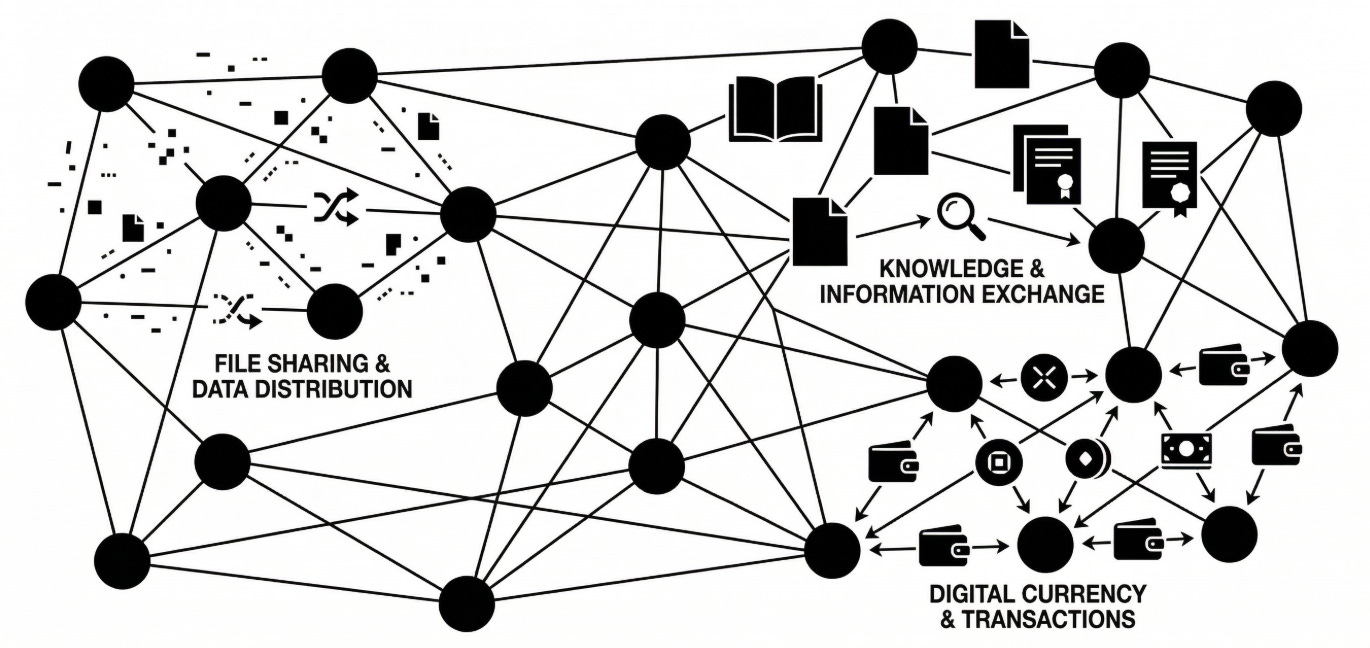 P2P, or peer-to-peer, is a network where participants connect directly to each other without a central server controlling the exchange. The P2P Foundation has documented these dynamics since 2005. BitTorrent pioneered this in file sharing. Instead of downloading a movie from one central server, you pull fragments simultaneously from thousands of users, each one both consumer and distributor.